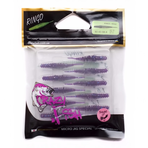 Crazy Fish Ringo 1.6" е една от най-ефективните ултралайт силиконови примамки за микроджиг риболов. Моделът със Squid аромат провокира атаки дори от пасивни хищници 🎣
