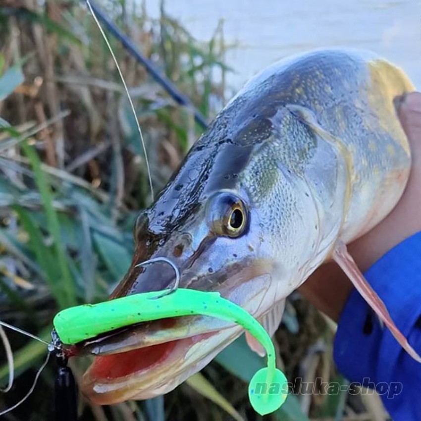 Симетричната форма на главата намалява нежеланото въртене при замятане, особено с джиг-риг. Изработена от издръжлив силикон, обогатен със сол, аминокиселини и атрактанти, тя е ефективна и надеждна.