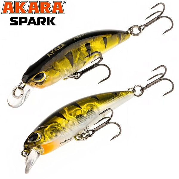 Воблер Akara Spark 50S е компактен потъващ модел с дължина 50 mm и тегло 3.5 g, създаден за ултралайт риболов на пъстърва, костур, кефал и мъздруга. 🎣