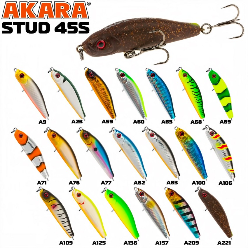Akara Stud S, 4.5 мм, 4.5 г, цвят А23, потъващ воблер