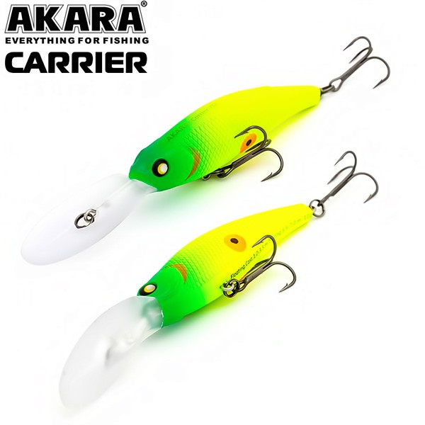Плаващ воблер Akara Carrier 75F е универсална примамка за спининг риболов с дължина 75 мм и тегло 12 грама. Компактната форма и широката лопатка осигуряват стабилна високочестотна игра дори при течение. 🎣