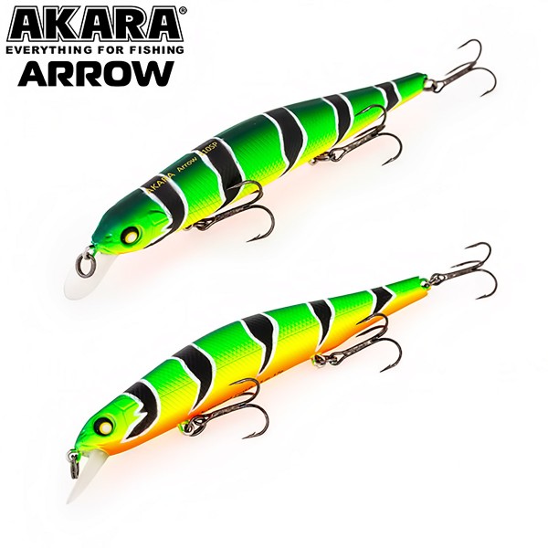 Suspending воблер Akara Arrow 110SP е универсална примамка тип minnow с неутрална плаваемост. Зависва във водата при пауза, което предизвиква атака от пасивни хищници.
