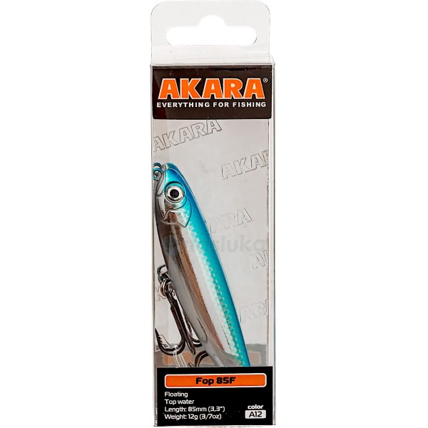 Воблер Akara Fop 85F 85 мм, 12 г - цвят A12 е плаваща повърхностна примамка, създадена за спининг риболов на щука и распер.