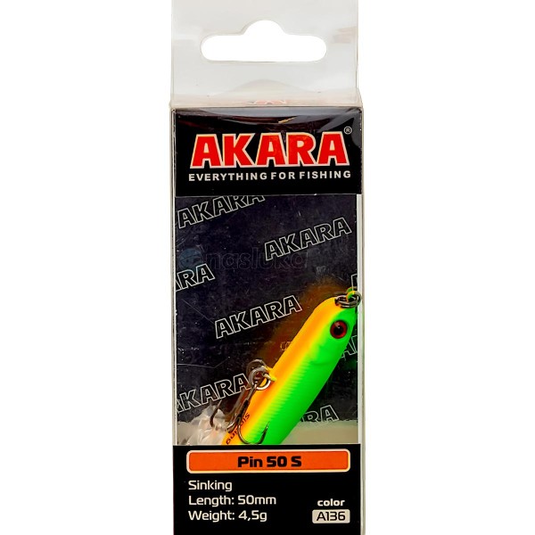 Воблер Akara Pin 50S 50 мм, 4.5 г - цвят A136 е потъваща примамка за костур и кефал с отчетлива вибрация при равномерно водене.