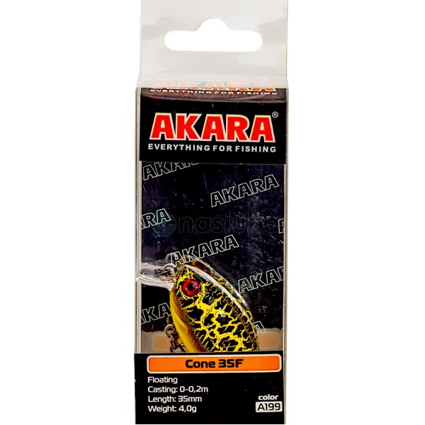 Воблер Akara Cone 35F 35 мм, 4 г - цвят A199 е класически кранк, създаден за риболов на кефал и пъстърва в плитки и средно дълбоки води.