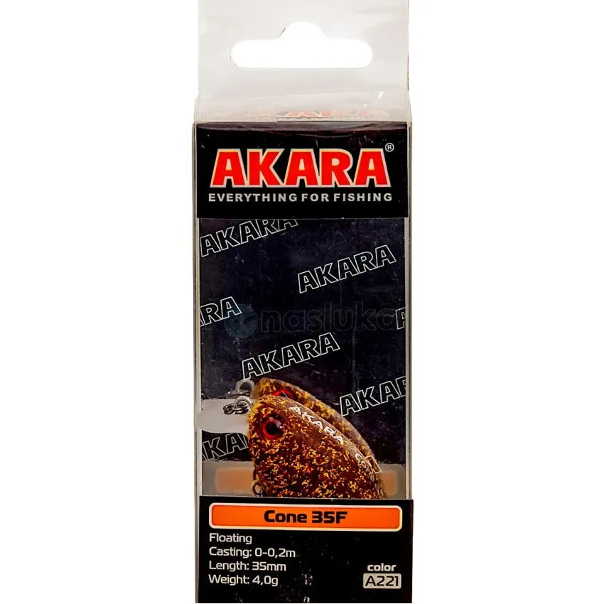 Воблер Akara Cone 35F 35 мм, 4 г - цвят A221 е класически кранк за риболов на кефал и пъстърва. Създаден е за максимална стабилност и естествена игра в плитките слоеве на водата. 🎣