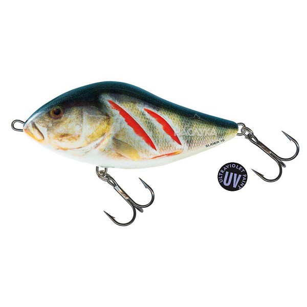 След въвеждането му през 2002г. Salmo Slider продължава да бъде една от най-продаваните изкуствени примамки. Уникалната форма и неустоимата му игра са го направили не само една от най-великите, но и най-копирани примамка за Европейския пазар днес. Воденето на тази примамка не е толкова трудно, колкото изглежда - просто трябва да се следи за правилната игра. Достатъчно е да се каже, че със Slider всеки метод е ефективен, особено ако се редуват периодични серии от бързи и енергични подръпвания на пръчката с кратки паузи. Препоръчва се за щука, бяла риба, костур, сом и други хищни риби. Подходящ за различни типове водоеми, но много ефективен във води с висока растителност.