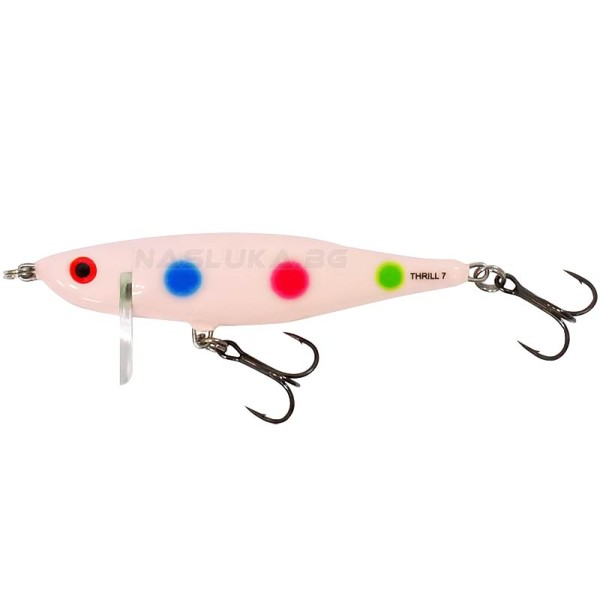 Salmo Thrill е воблер, специално предназначен за распер, но подходящ и за улов на други хищни риби като щука, костур и бяла риба. Този воблер е създаден да бъде воден близо до повърхността на водата.