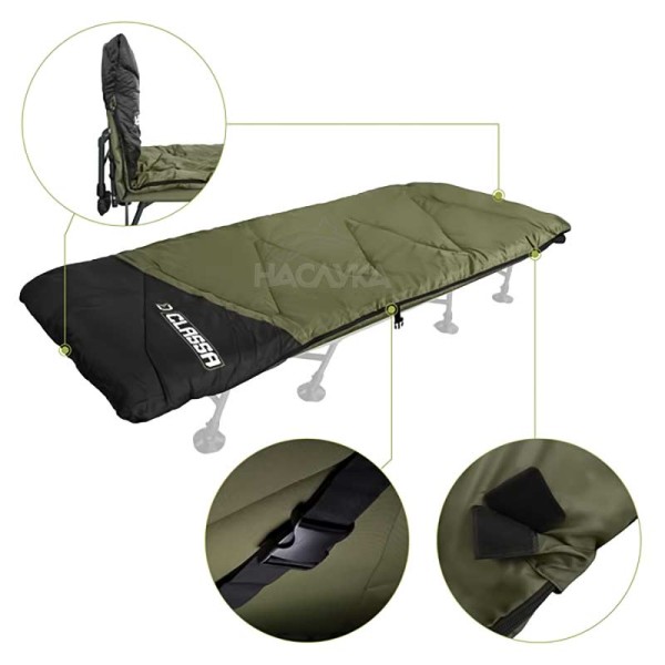 Спалният чувал Delphin Classa е идеален за кратки риболовни излети, особено в топлите летни нощи.