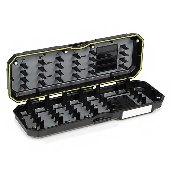 Класьорът включва вградени мерителни щифтове, които позволяват прецизно измерване на желаната дължина.