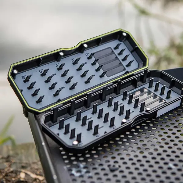 Гумираният материал осигурява стабилност дори при влажни условия. Магнитното заключване гарантира, че монтажите остават защитени и подредени. 🐟