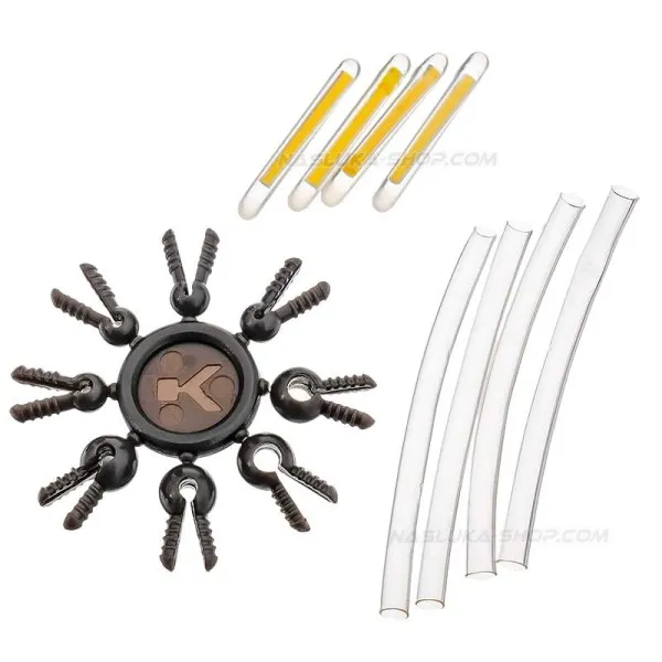 Korum Starlight Holder Kit включва 4 различни по размер адаптори, пасващи към върховете на всяка марка и модел въдици.