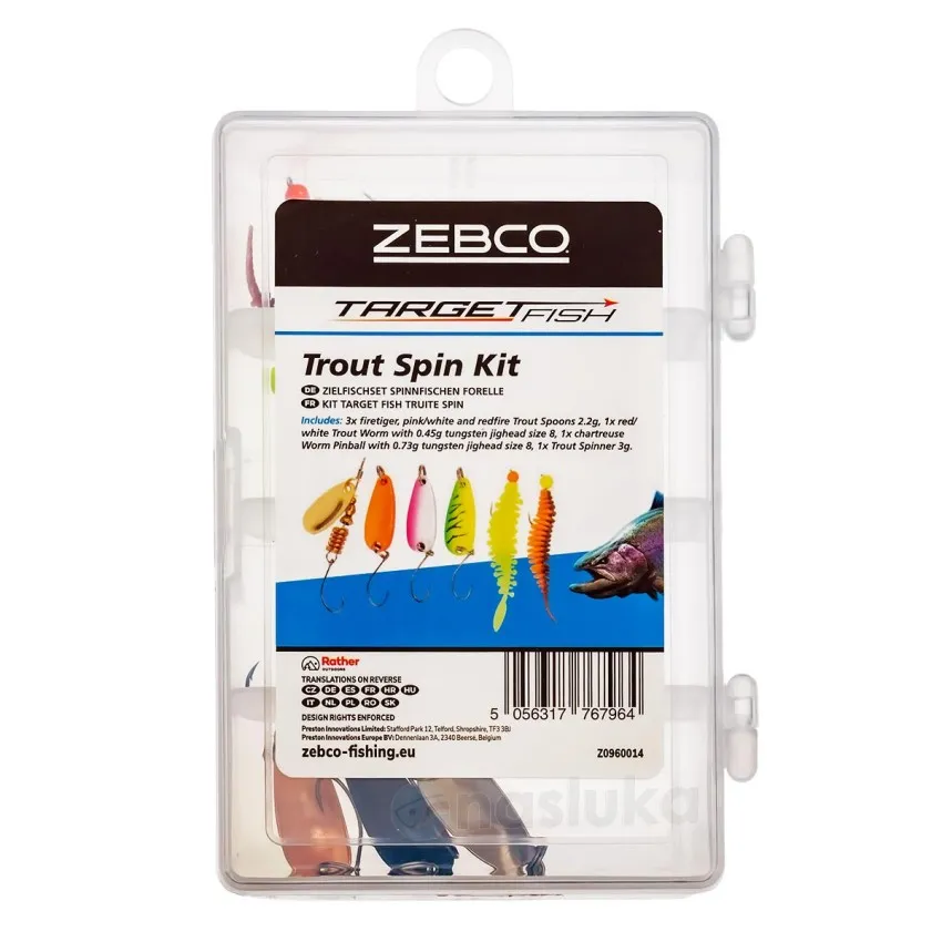 Zebco Target Fish Trout Spin Kit е готов комплект от 6 примамки, специално подбрани за риболов на пъстърва 🎣. Идеален за реки, потоци и планински езера.