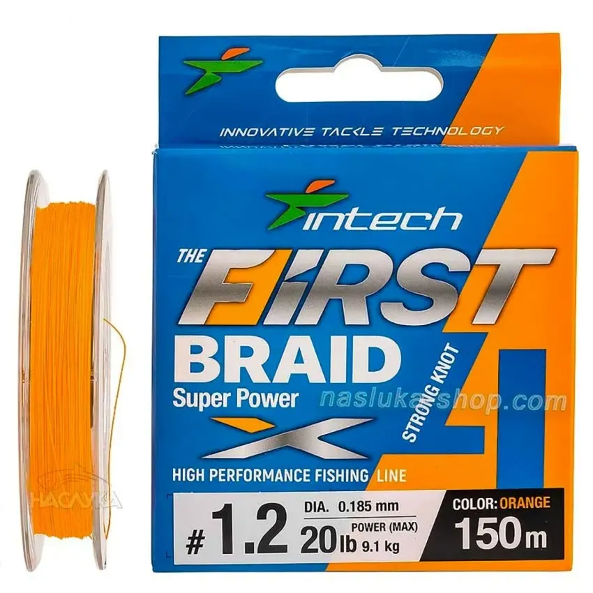 - Плетено влакно Intech First Braid x4 - оранжево, 0.185мм
