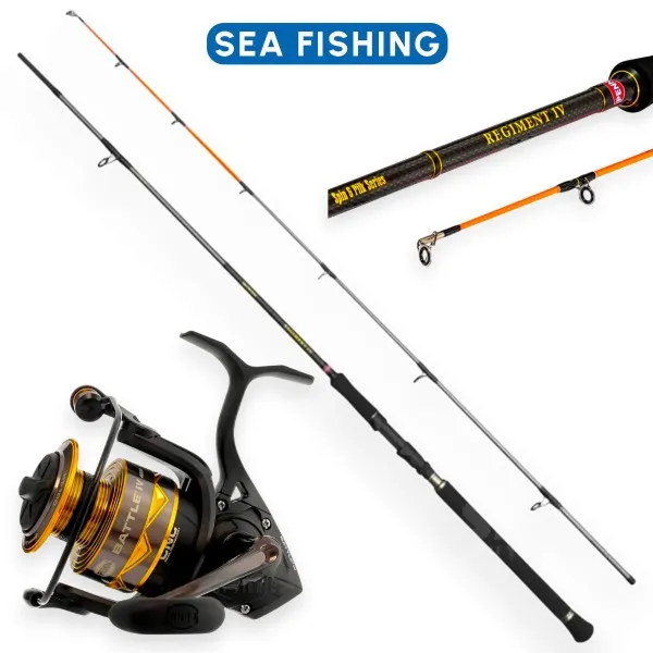 Морският комплект Penn Regiment IV съчетава мощна въдица 2.74м с акция 40-120г и надеждна макара Battle IV 4000. Идеален избор за джигинг и спининг риболов в морски условия 🎣