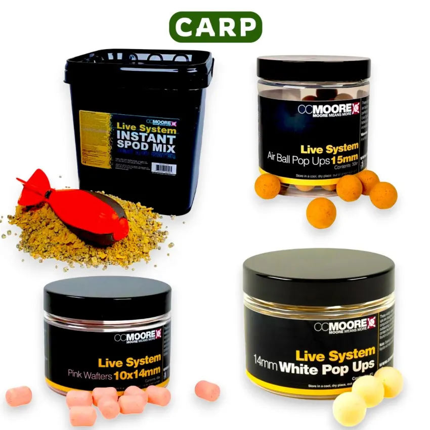 Ароматната серия Live System от CC Moore осигурява бърза атрактивност във водата 🐟 Комбинацията от различни размери и цветове позволява гъвкави тактики според активността на рибата.