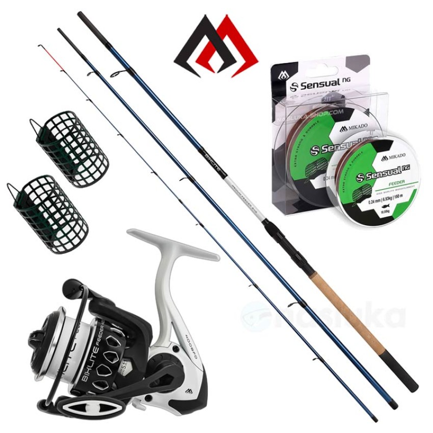 Открийте пълното удоволствие от фидер риболов с фидер комплект Mikado Bixlite Medium - перфектна селекция за начинаещи и напреднали. Събран в едно с въдица, макара, влакно и фидер хранилки, този комплект ви осигурява всичко необходимо за незабавен старт!