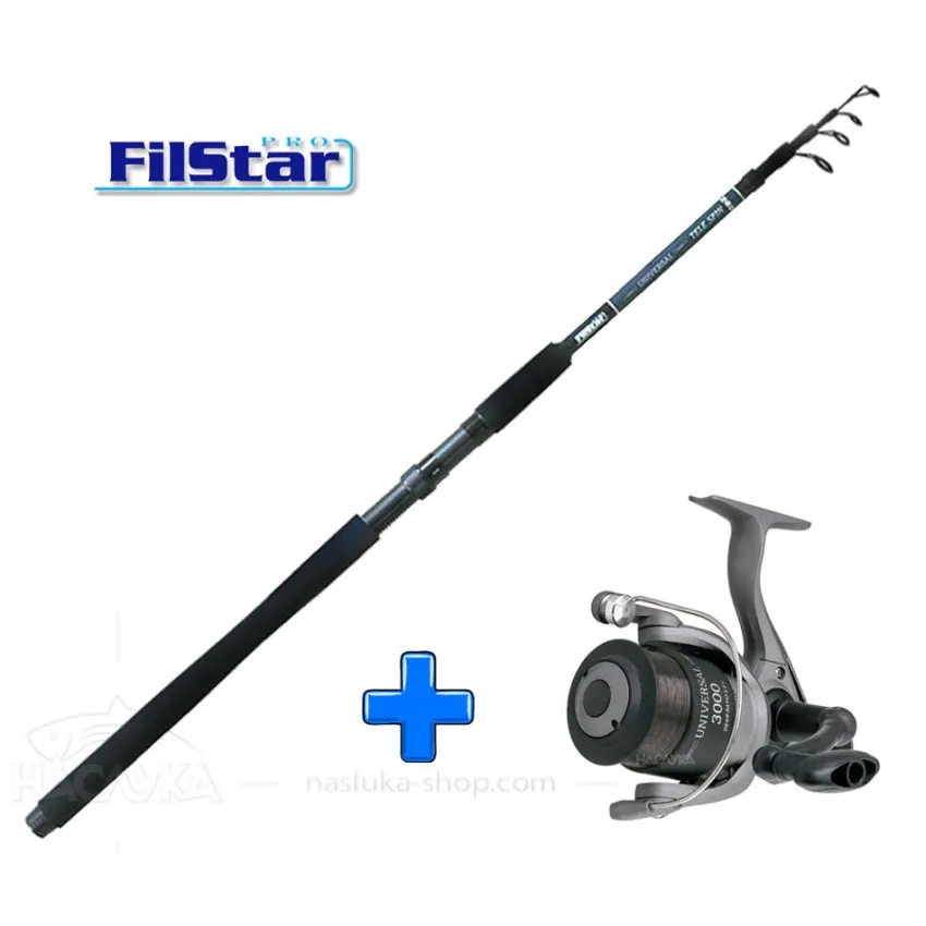 FilStar Universal Tele Spin e страхотен спининг комплект както за начинаещи, така и за напреднали в риболова на хищници с изкуствени примамки. Комплектът се състои от телескопична въдица и спинингова макара с навито влакно - Universal 3000.