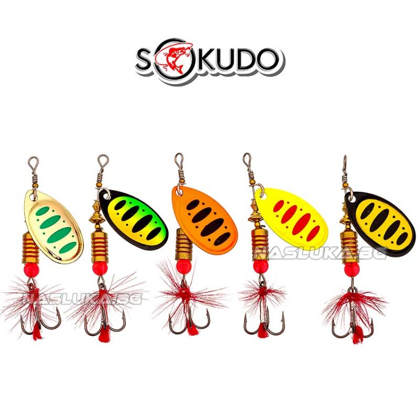Комплект въртящи блесни за риболов Sokudo Lake Spinners, 5 бр.