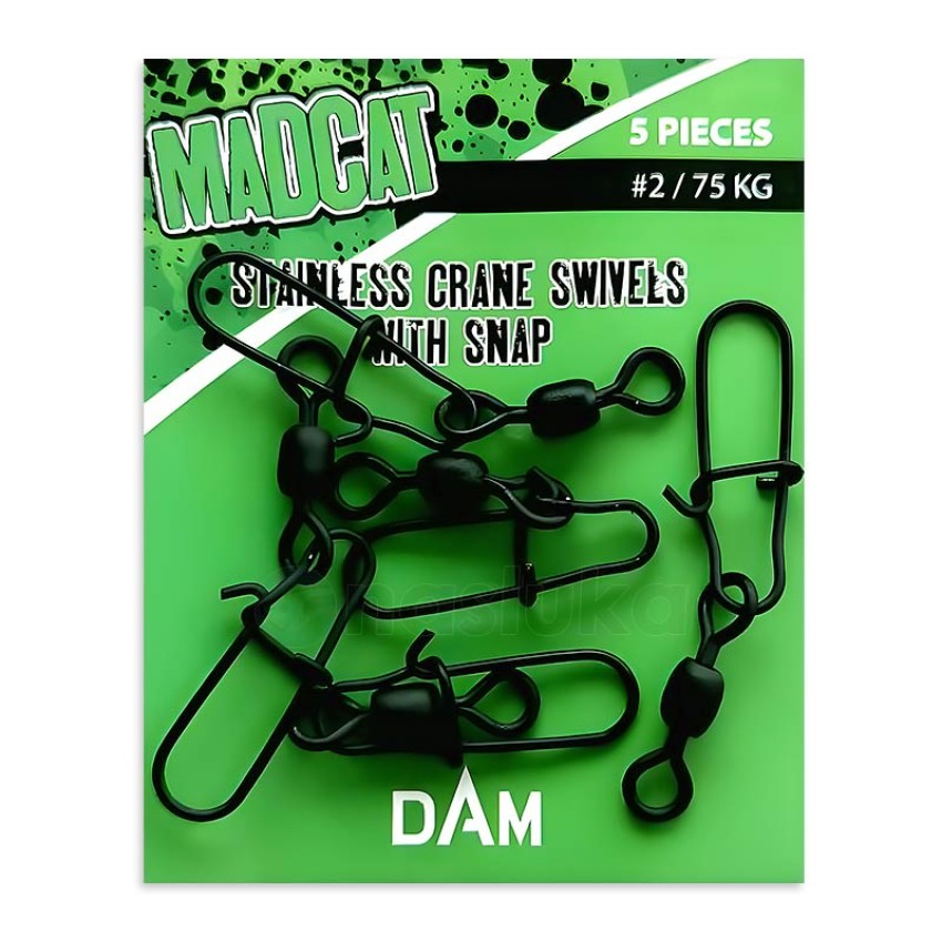 - Вирбели с карабина Madcat Stainless Crane Swivels with Snap - здрави и надеждни, осигуряващи сигурно свързване на такъмите.