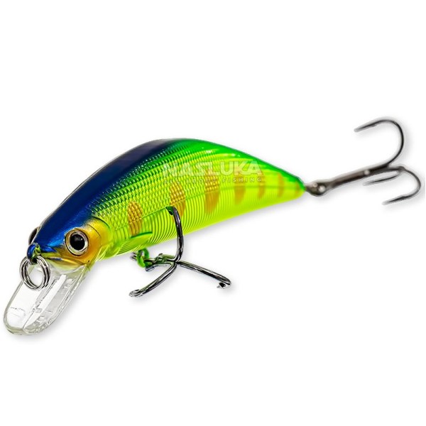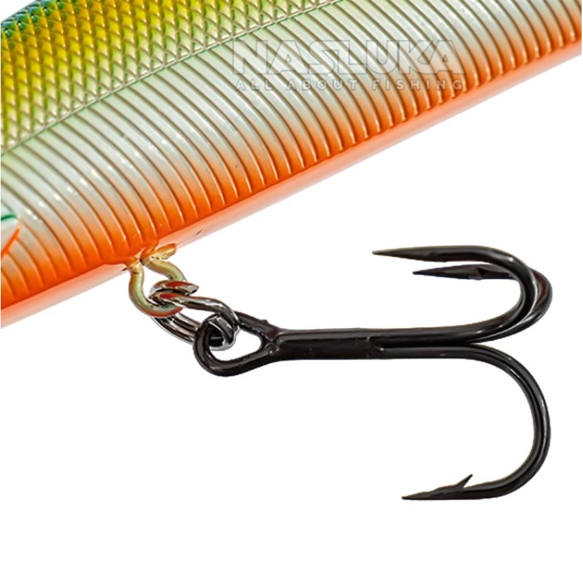 Воблерът е снабден с остри тройни куки и здрави халки, които гарантират надеждност при улов на едри риби.