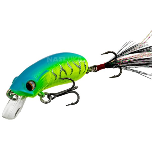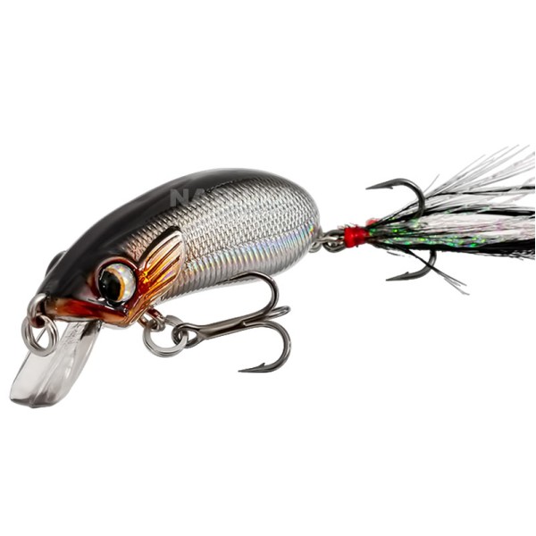 Допълнителен атрактор в задната част на воблера, включващ пера и блестящо ламе, увеличава шансовете за успешен улов.