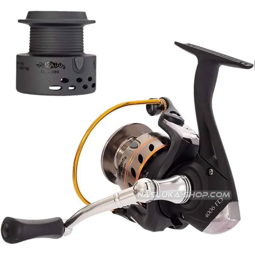 Универсална макара с графитен корпус и мултипозиционен преден аванс. Комплектът включва алуминиева и резервна графитна шпула. ⚡