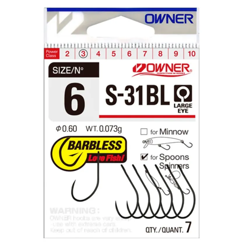 Owner S-31BL са специализирани куки без контра в черен цвят с хромирано покритие, създадени за максимална ефективност при спининг риболов. 🎣