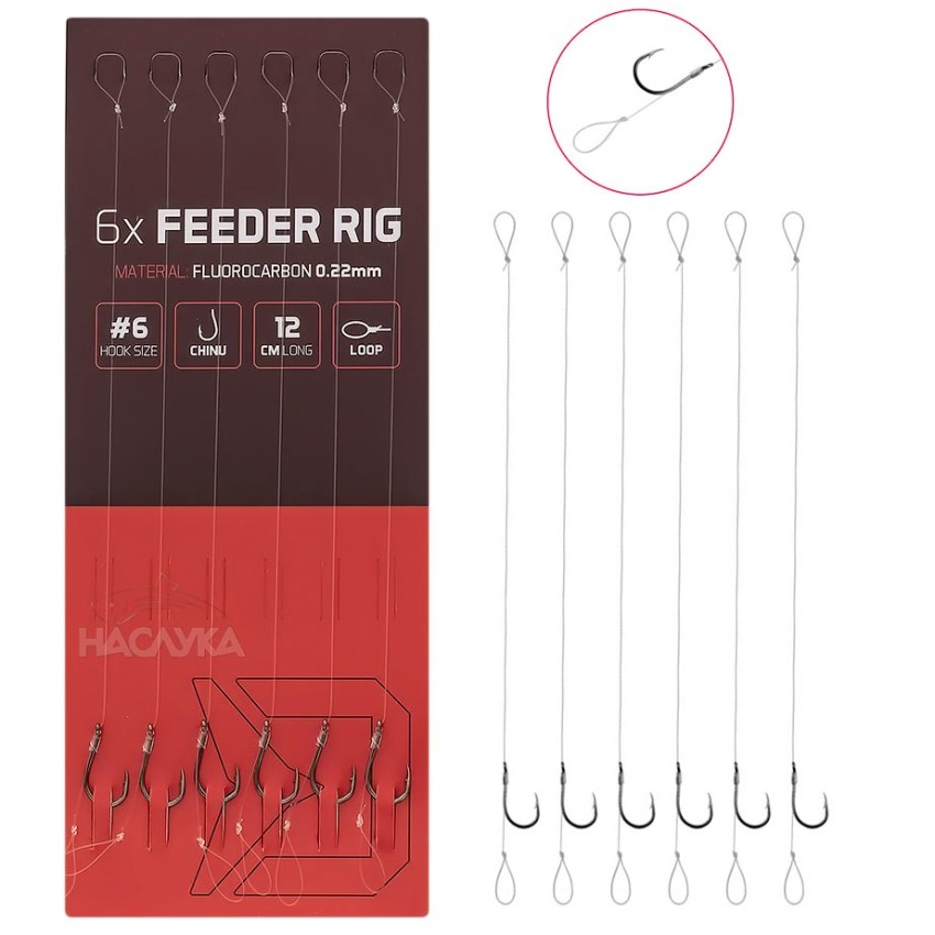 Delphin FLR Loop е комплект от 6 броя вързани куки за фидер риболов, изработени от флуорокарбоново влакно и здрави ковани куки, подходящи за монтаж "на косъм".