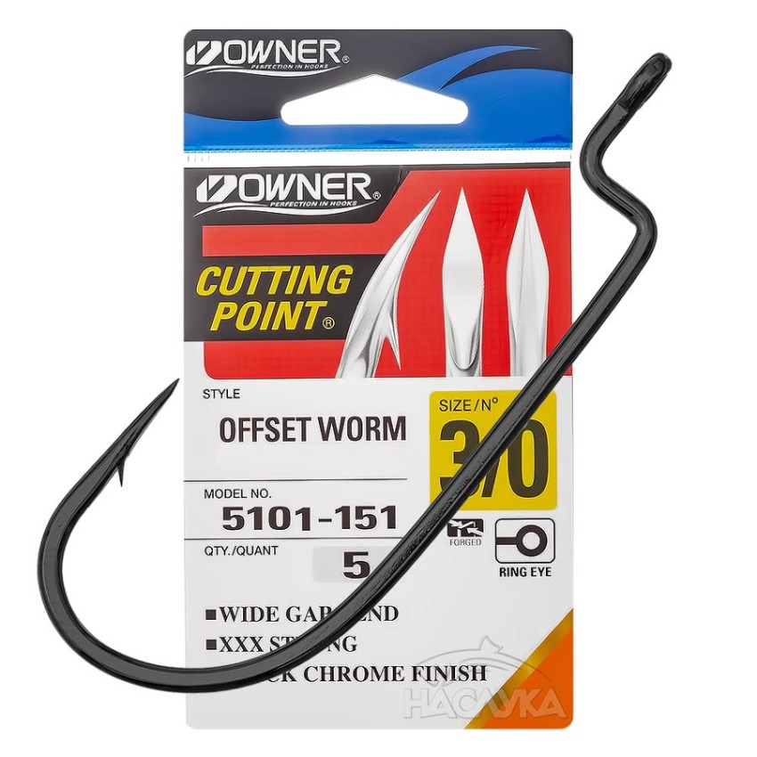 Owner Offset Worm 5101 са офсетни куки, подходящи за силиконови примамки, като могат да се окомплектоват по избор с различни джиг-глави или чебурашки в зависимост от условията на риболов.