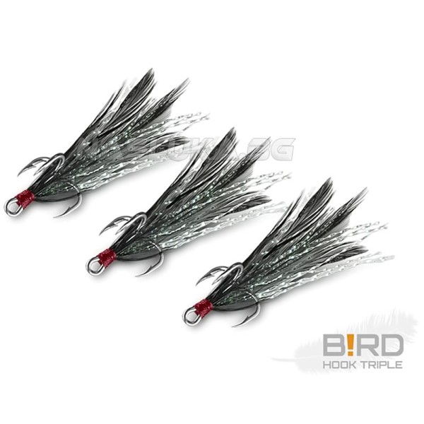 Най-голямото предимство на Delphin B!rd Triple Hook е в допълнителните пера, монтирани на всяка тройна кука. Те повишават атрактивността и правят всяка примамка по-ефективна.