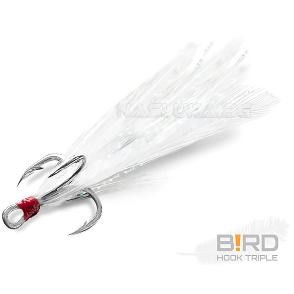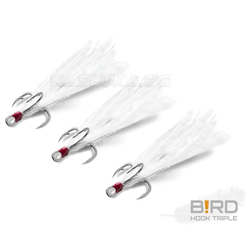 Тройни куки с пера Delphin B!rd Triple Hook, 3 бр., White
