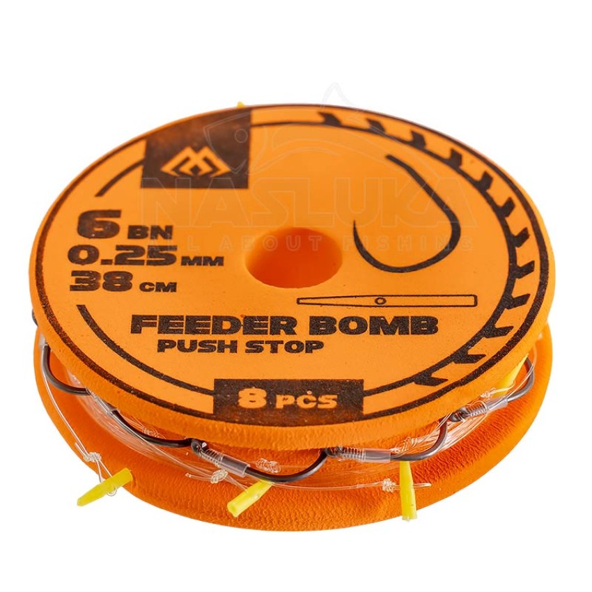 Вързани куки за фидер Mikado Feeder Bomb, Push Stop, 38 см, 8 бр.