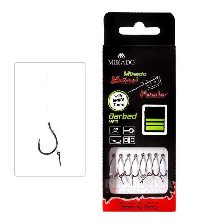 Mikado MF Rig with Spike Barbed Hooks, Mono е професионален комплект вързани куки за фидер риболов, осигуряващ отлична производителност и лесна употреба.