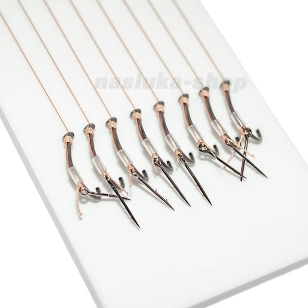 Комплектът включва 8 бр. предварително подготвени поводи с остри куки, висококачествено плетено влакно и специален 10 мм шип с контра за монтаж на стръв. Влакното Nihonto е със сведена до нула разтегливост, висока здравина и надеждност.