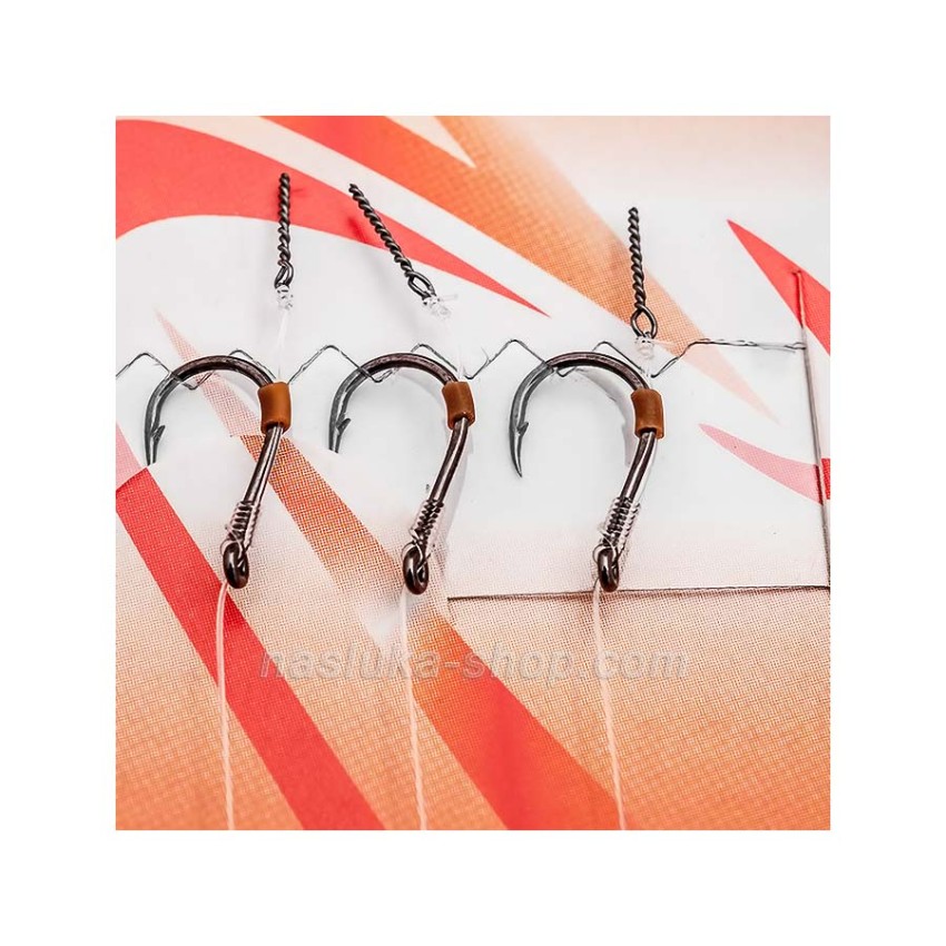 Монофилното влакно е прозрачно, като поводът е с дължина 10 см. Използвано е влакно с диаметър 0.25 мм за куки № 6 и 7 и 0.22 мм за куки № 8 и 9.