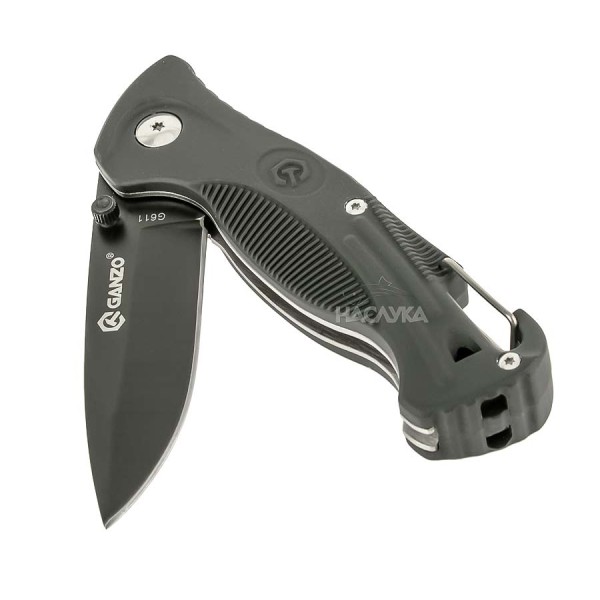 Сгъваем нож от разнообразния асортимент на марката Ganzo. Този нож е изработен от стомана 420С. Специалната обработка на материала повишава твърдостта, благодарение на което ножът запазва остротата си за дълго време. Дръжката е с метална основа и гумирани чирени. В долния й край е вградена аварийна свирка, което подчертава функционалността на модела. Това може да бъде незаменимо в екстремни ситуации. Към дръжката е добавена карабина, която позволява лесното закачане и откачане на ножа. Моделът Ganzo G611 е незаменима част от екипировката на всеки турист, катерач, ловец и риболовец.