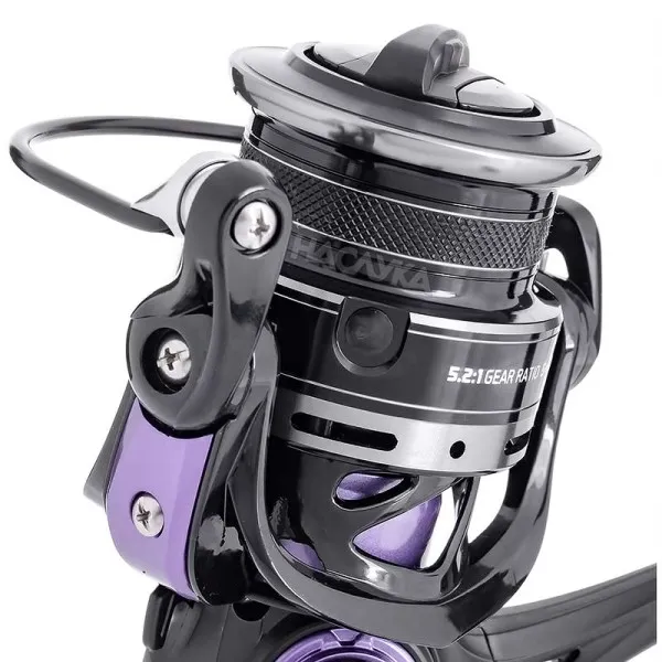 Притежава олекотен графитен корпус, метална дръжка и анодизирана метална шпула.