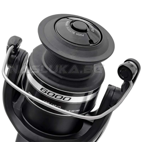 Размер 6000 е с ниско предавателно отношение 4,6:1, което осигурява много мощност при борба с големите риби.