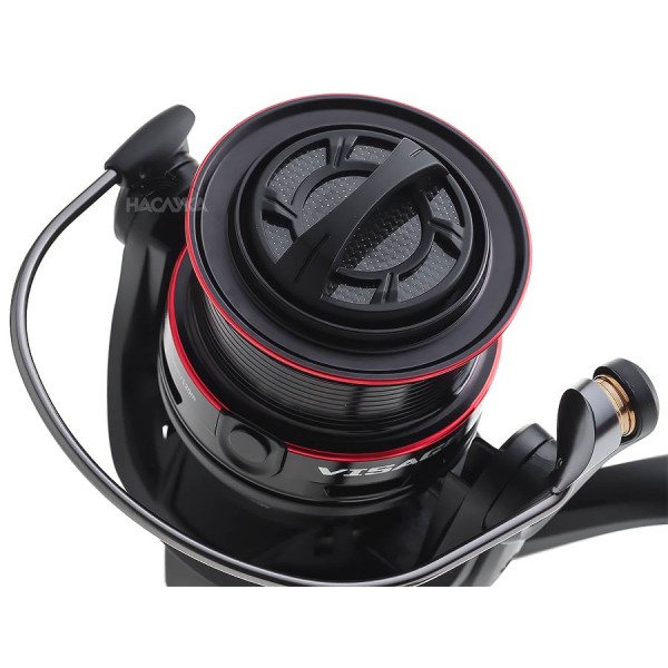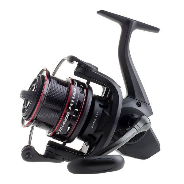 Нов модел макара от Formax с уникална визия, специализиранa за фидер риболов. Отличава се с дизайн, сходен с този на биг-пит моделите, но в умален вид. При размер 4000 макарата има капацитет от 200 метра влакно с диаметър 0,20 мм, които се побират на относително широката и плитка шпула с V-образен ръб и диаметър 5,8 см. Формата на ръба на шпулата подпомага замятането на дистанция, което в определени ситуации може да е решаващо за успешния резултат от излета. Двата метални кръгли клипса са от важно значение за всеки привърженик на фидер риболова. Механизмът, осигуряващ възвратно-постъпателното движение на шпулата, е с безконечен винт (worm shaft), на което се дължи впечатляващото влакнонареждане на Visage Feeder 4000. Добавена е система, предотвратяваща вероятността от попадане на влакното под шпулата. Освен всичко останало, макарата е с много стилен дизайн, с черен корпус и червени ивици на шпулата - едно истинско съкровище за всички практикуващи фидер риболов!