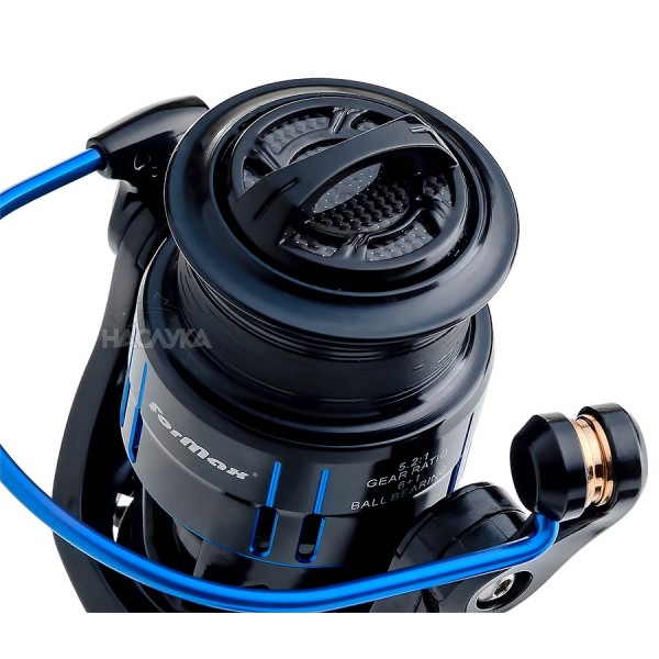 Отлична спинингова макара с много качествен и плавен преден аванс. Zayden 2004 е макара, отличаваща се с много добро редене на влакното, плавен ход и впечатляващ баланс. За равномерното влакнонареждане важно значение има системата S-Curve. Може да се използва за различни типове риболов, включително пикер и лек фидер, мач, light спининг, болонезе и др. Оборудвана е с две метални шпули с различна дълбочина, от които едната е с гумен ринг, които дават възможност за вариране с използваното влакно. Макарата е в отличителната за Formax цветова комбинация от синьо и черно. Предлага се окомплектована в платнен калъф за съхраняване и транспортиране.