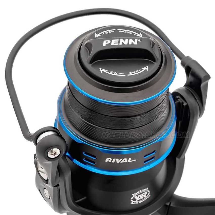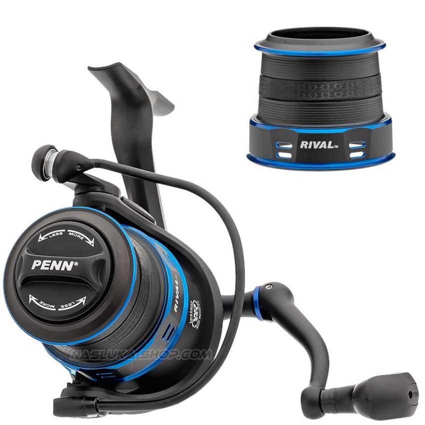 Penn Rival Blue e висококачествена макара с преден аванс и две longcast шпули за далечни замятания, разработена през 2021 г.