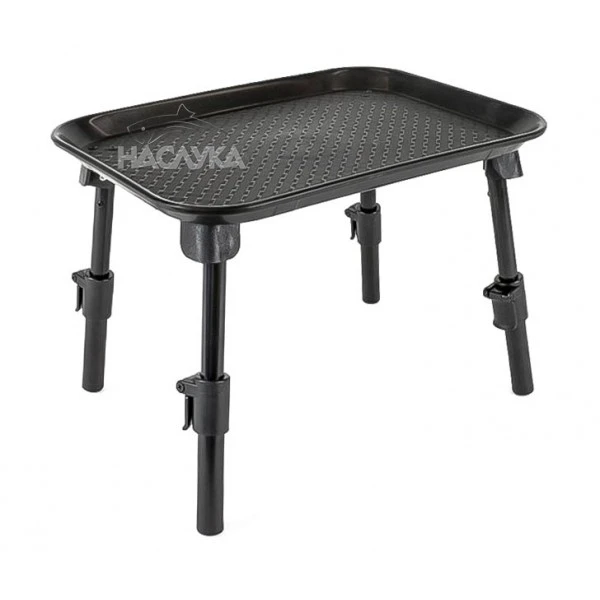 Компактна масичка за палатка със сгъваеми телескопични регулируеми крака. Странични бордове и грапава повърхност, за да се предотврати случайното падане или приплъзване на риболовните аксесоари. Много лека и удобна за транспортиране, масичката лесно се сгъва до компактни размери.