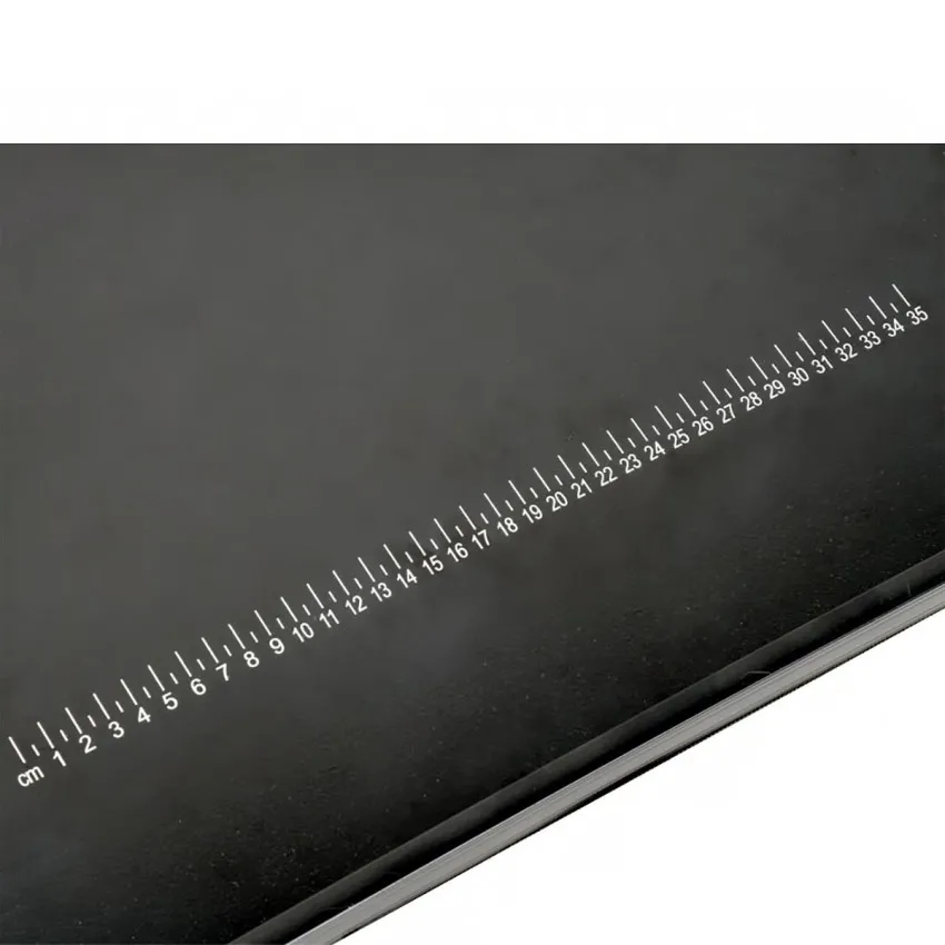 Металният плот е оборудван с високи ръбове, които предпазват аксесоарите от падане, специална стойка за позициониране на телефон (вертикално или хоризонтално) и мерителна линия до 35 см - идеална за измерване на монтажи и поводи.