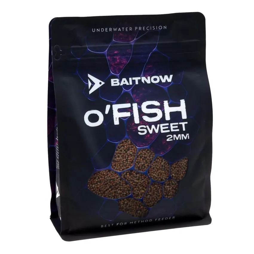 Mikado Baitnow Method Feeder Pellet 2мм, 800г, O'Fish Sweet са микропелети с високо съдържание на рибно брашно, създадени за ефективен фидер риболов. Формулата съчетава частици с различна разтворимост и маслено съдържание. 🎣