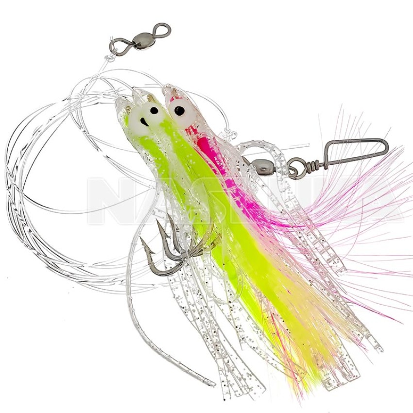 Монтажът е с дължина 1.0 м като всяка примамка е монтирана на къс повод (7.5 см).