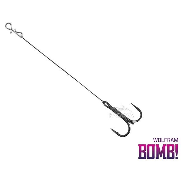 Къси волфрамови поводи с тройна кука и карабинка-бърза връзка. Изработени от волфрамова тел с издръжливост 15 кг и висококачествена тройна кука от Mustad. Много подходящи за монтаж със силиконови примамки при риболов на щука, без никакаъв риск от прехапване на повода. Карабинката предлага сигурно закрепване и бърза смяна на повода при нужда.