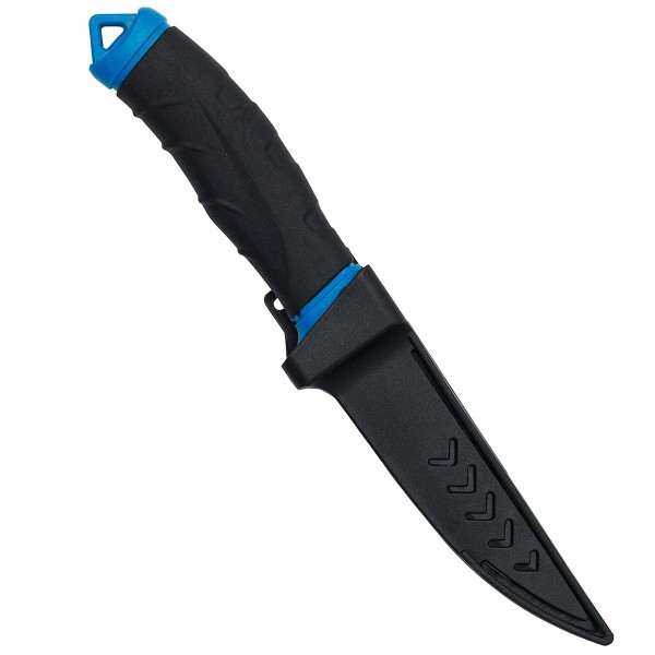 Назъбената част от острието осигурява прецизно рязане. 🎣 Ергономичната дръжка с мека повърхност гарантира сигурен захват дори при влажни условия.