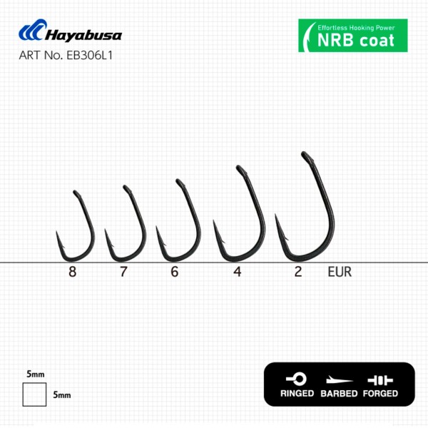 BN е черно никелово покритие, което прави куката по-дискретна под вода и я предпазва от ръжда.