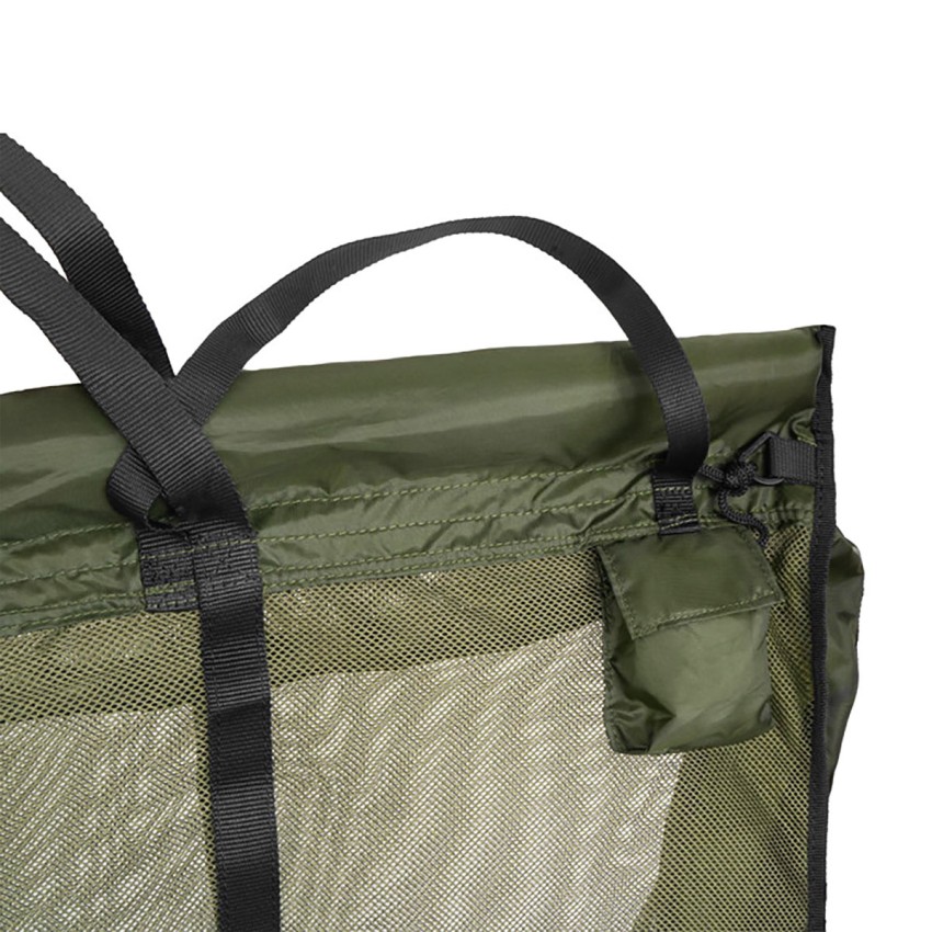 Ръбовете на този карп сак Delphin са оборудвани с плаващи елементи, които поддържат улова безопасно под водната повърхност докато подготвяте фотоапарата. Основната част е изработена от фина мрежа, щадяща за рибата.